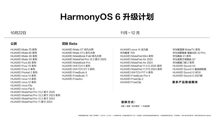 [中国,10月22日] 华为举办鸿蒙操作系统 6 · 特别发布会,正式发布了新一代全场景操作系统HarmonyOS 6, 此次HarmonyOS 6全新进化、技术更强、体验飞跃,为用户带来更好玩好看、更智能、更安全、更好用、更流畅的系统体验。即日起,HarmonyOS 6面向首批包括Pura80系列、Mate70系列、nova14系列等在内的90多款机型陆续开放升级炒股配资行情,欢迎广大用户踊跃报名参与,为鸿蒙生态建设贡献力量。