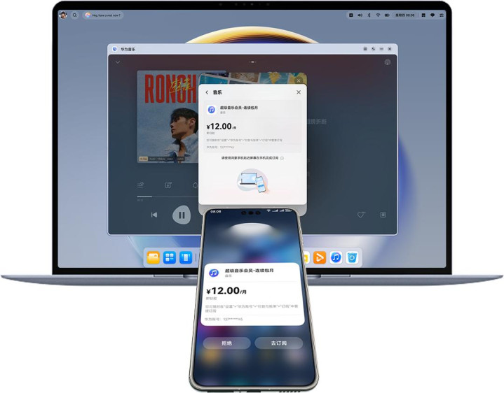 在传统PC端,遇到诸如会员充值、购物缴费等支付场景,往往需要PC端率先展示支付二维码,用户再解锁手机找到支付软件,点击进入后找到“扫一扫”功能进行扫码支付,过程略微繁琐。而得益于鸿蒙操作系统的全场景互联特性,此次HarmonyOS 6推出了手机PC碰一碰支付流转功能,不同于过往的多步复杂操作,PC端应用内拉起支付收银台后,只需手机碰一碰界面,支付信息即可流转到手机之上,用户快速完成支付,实现PC端与手机端支付功能的高效协同。